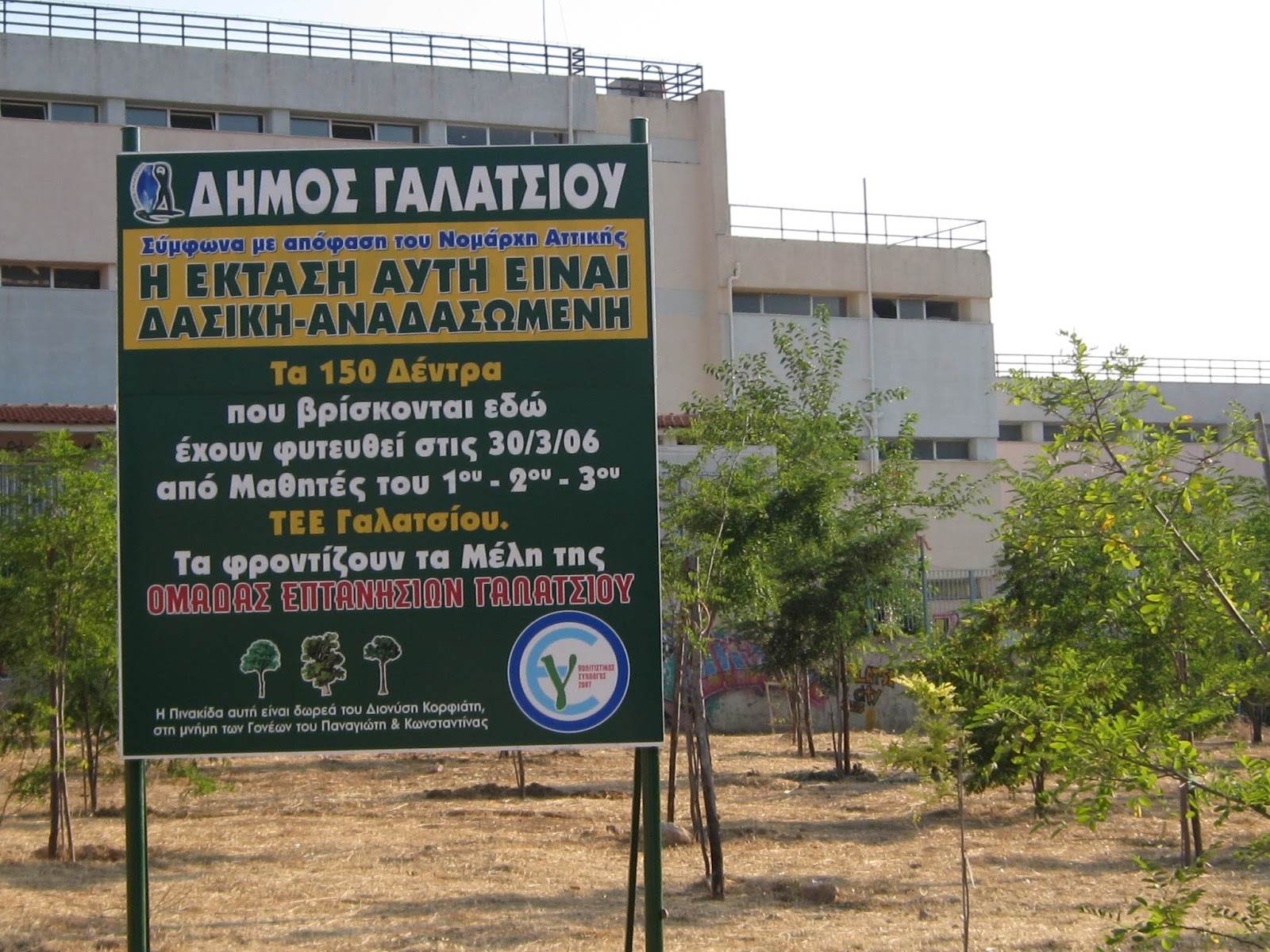 τότε Διοίκησης του Δήμου είχαμε αναλάβει την ευθύνη φροντίδας του χώρου (Παραπλεύρως των σχολικών κτηρίων επι της οδού Δρυόπιδος) με 133 μικρά δένδρα τα οποία εδόθησαν από τον Σύλλογό μας για φροντίδα αντίστοιχα σε 133 συμπολίτες μας.